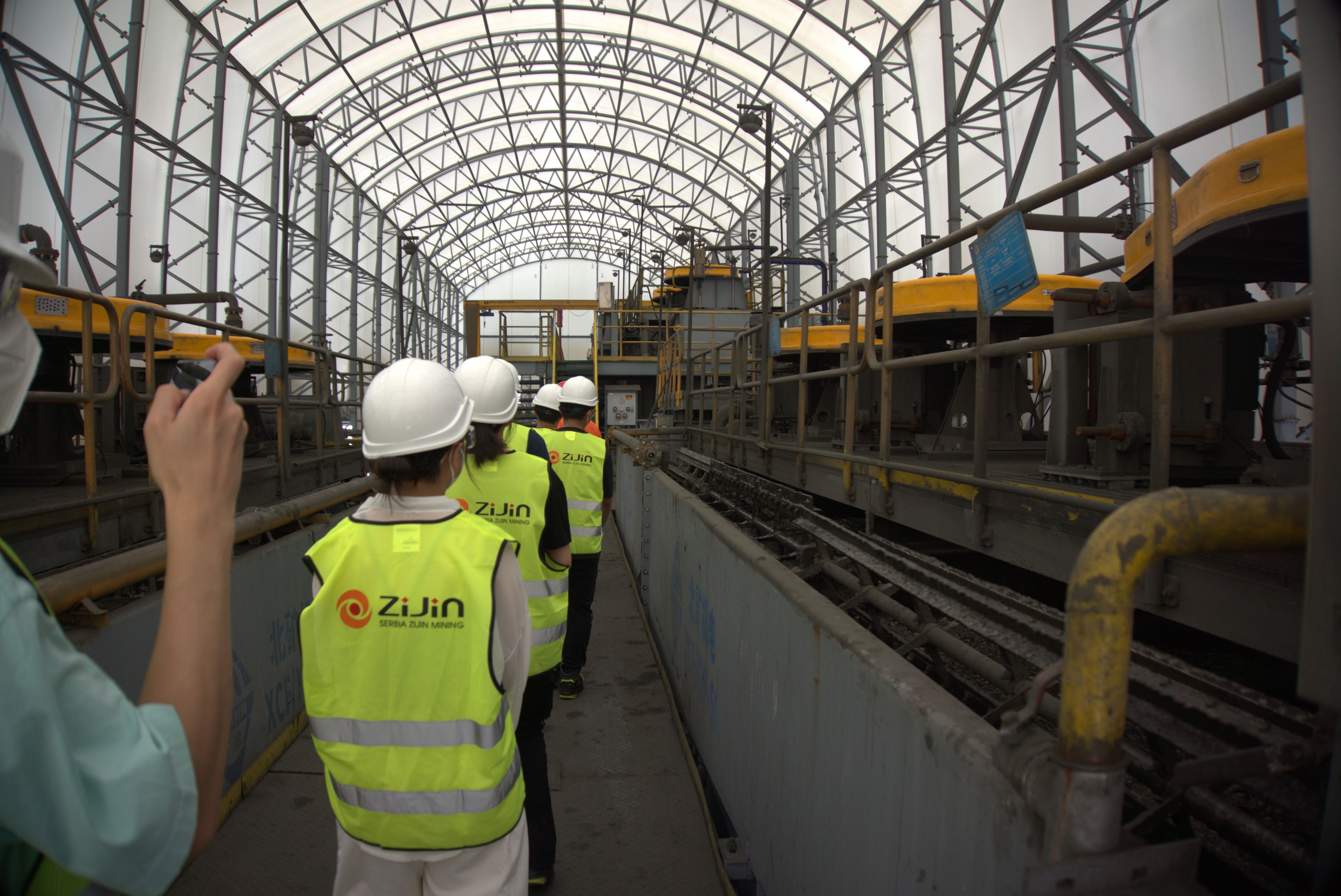 交流团在塞紫金交流期间,参观了铜金矿井下采矿场、尾矿充填站、选矿厂的破碎、磨矿和浮选工艺、尾矿库等矿山设施,听取了现场技术人员的专业介绍,同学们初步了解从矿石开采、选矿和精矿产出的全流程。