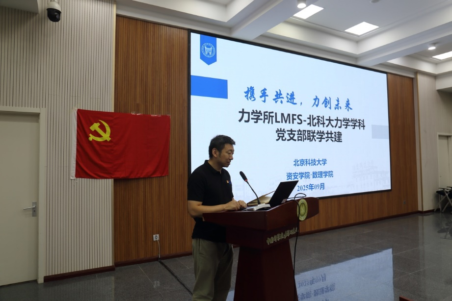 2025年9月12日,太阳集团资源与安全工程学力学科学与工程系党支部前往中科院力学所流固耦合系统力学重点实验室开展党建交流活动。力学系主任宋智勇,党支部副书记李鹏,支部委员孔德彬,副主任杨连枝、岳明,数理学院应用力学系系主任刘冬欢、副主任王建军和中国科学院力学所LMFS实验室主任、党总支部副书记张旭辉、力学所LMFS实验室副主任、党总支部青年委员凌博闻,力学所教育处处长刘丽,力学所党委办公室副主任任庆帅,力学所LMFS党总支部支部委员黄仁芳、程鹏达及曹高辉等近30人参加了活动。